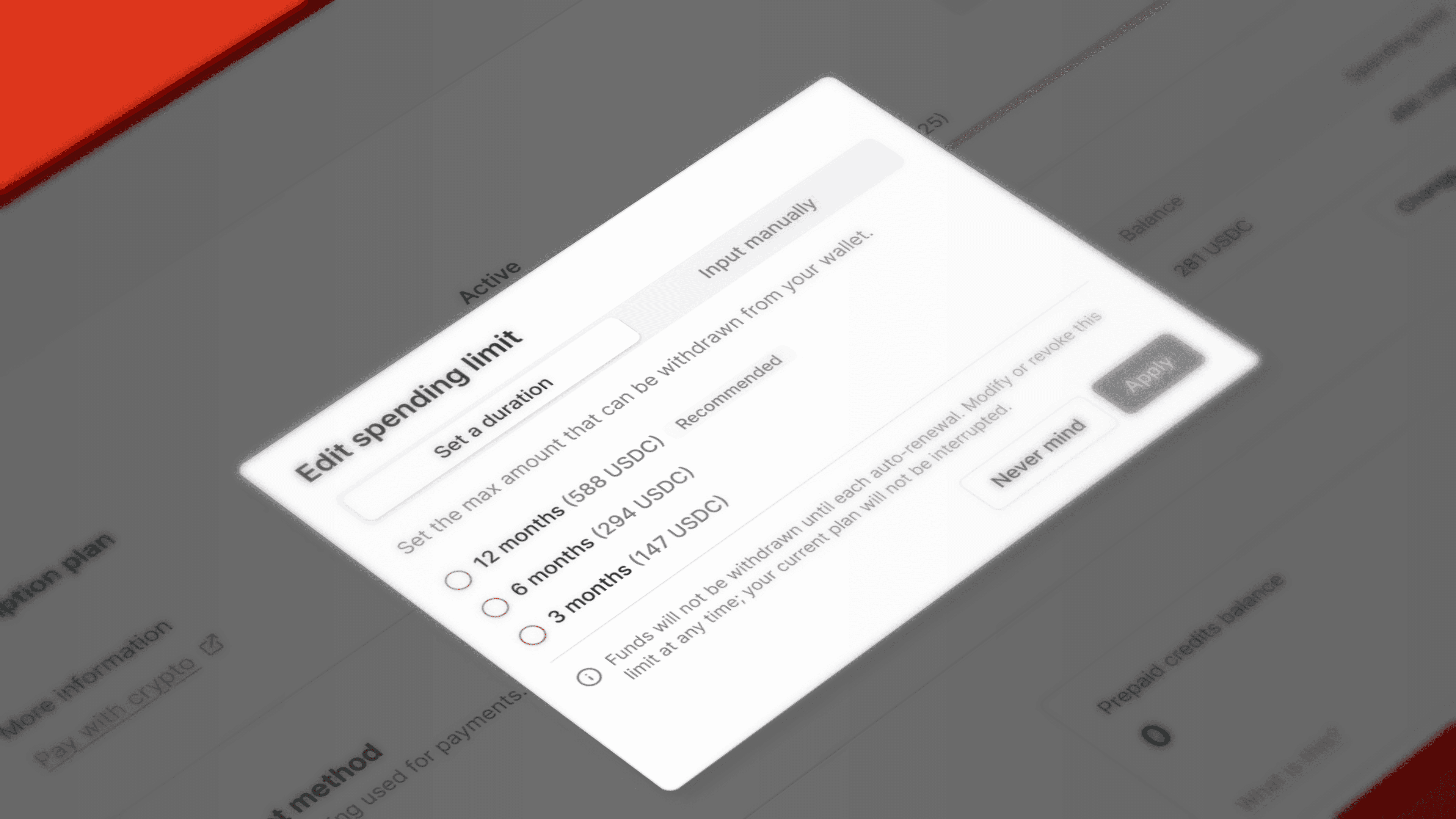We did the math so developers don't have to by introducing duration-based selection for crypto subscriptions so the right option is obvious. Auths got a name that actually explains what it does: Spending Limits. And Dedicated Nodes got a full rethink, with a guided wizard that walks you to the right node every time instead of leaving you to figure it out.