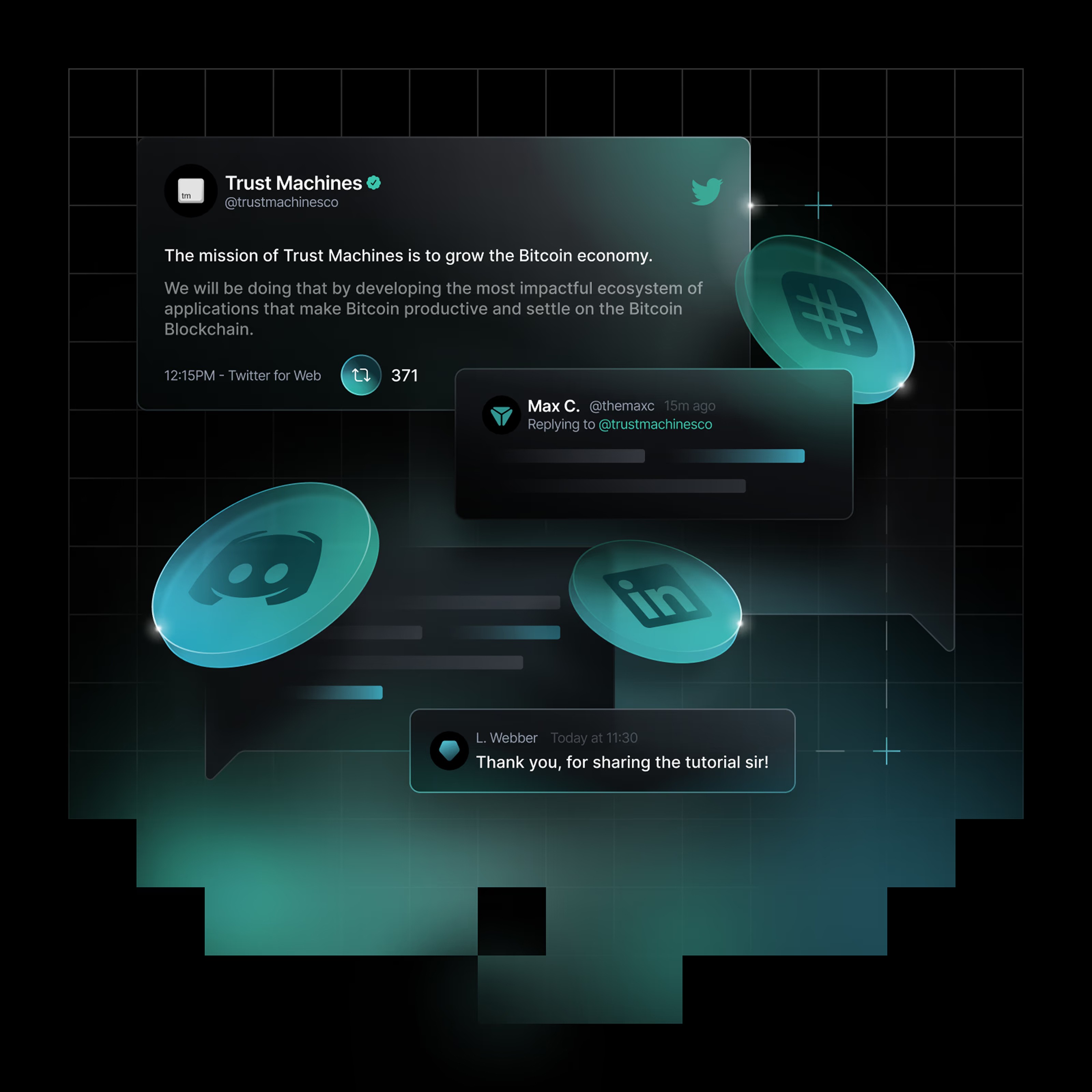 We built landing pages for the homepage, About, Careers, and Products — each with custom informational graphics. The Learning Center gave Trust Machines a platform to educate and activate their community, positioning them as a thought leader in the Bitcoin ecosystem. The illustration library (roughly 50 pieces ranging from abstract brand visuals to explainers on complex crypto concepts) gave both the website and social channels a consistent, recognizable aesthetic.