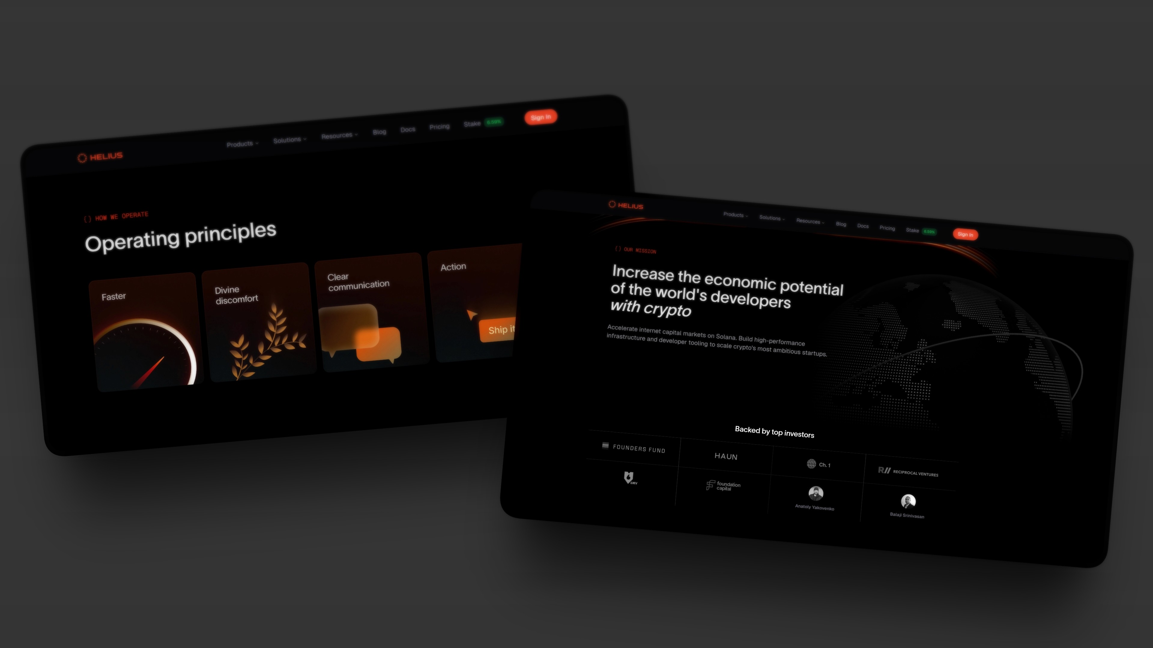 Crypto infrastructure is inherently technical and abstract. Developers understand what RPC nodes and blockchain data do, but static graphics don't convey the speed and reliability that make Helius different. We needed motion that felt both premium and purposeful—not gratuitous animation, but movement that actually communicated product value.