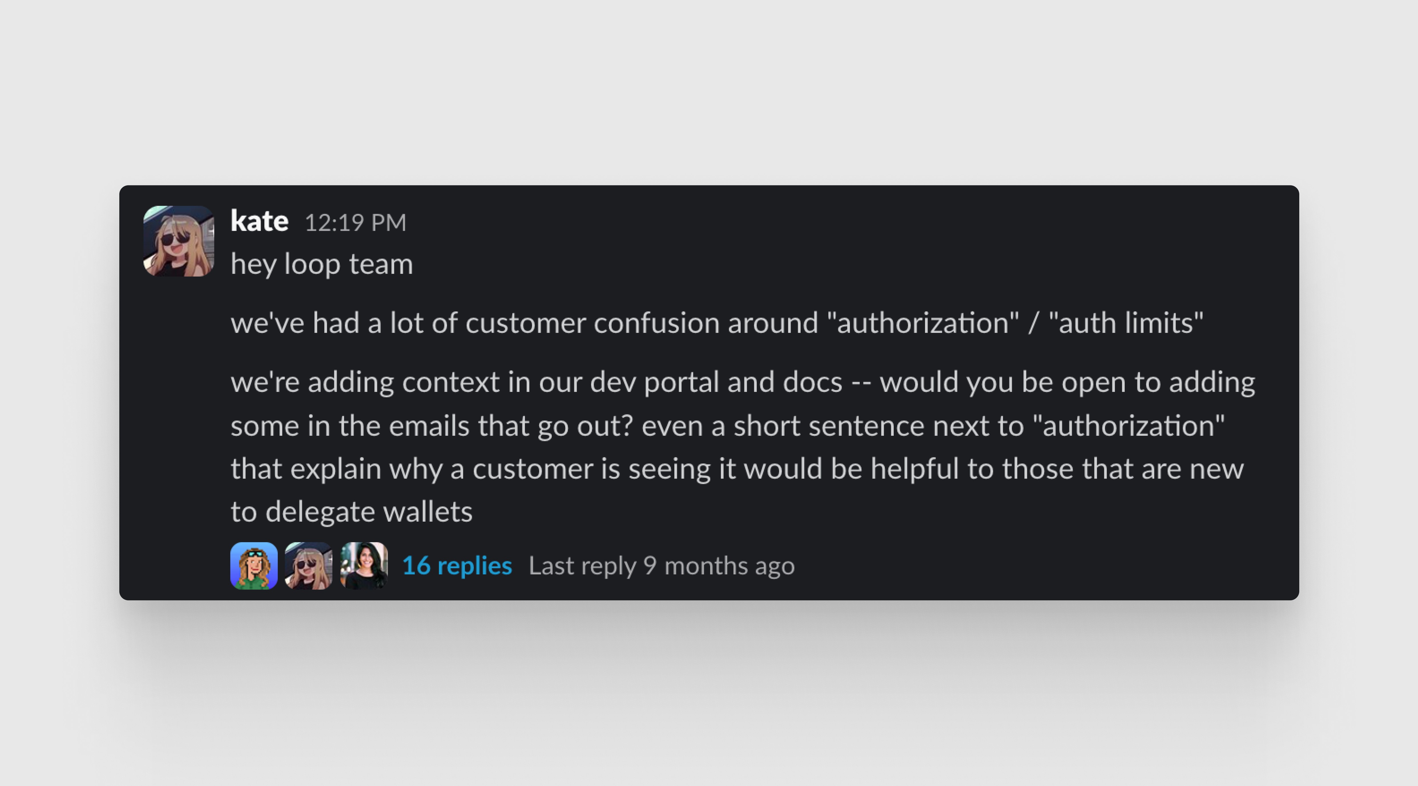 I reached out to customers in our Telegram community to quickly test, sharing prototypes directly for feedback. Testing confirmed "spending limit" was the best terminology, and we aligned with Loop on the change so it could be changed across both portals and customer emails.